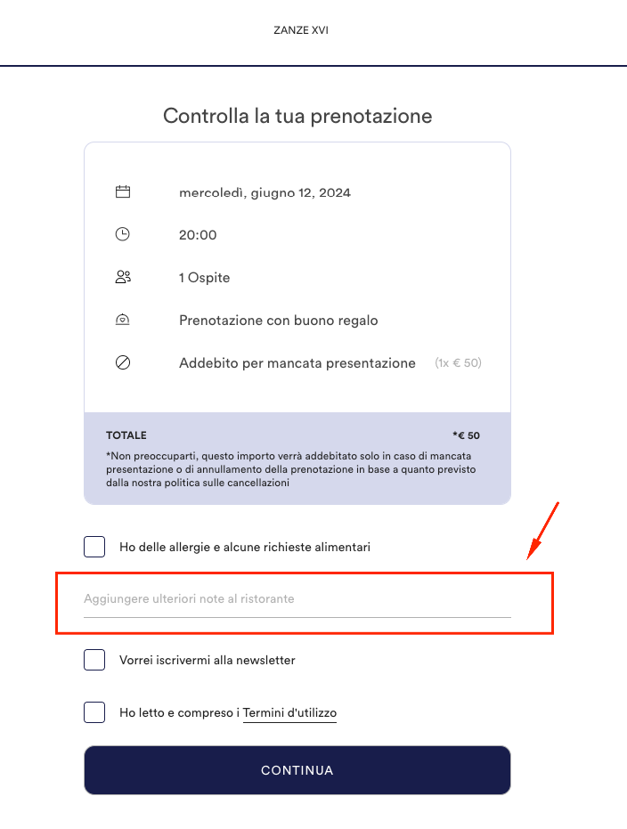 - Inserisci il codice nel campo NOTE come vedi in immagine.